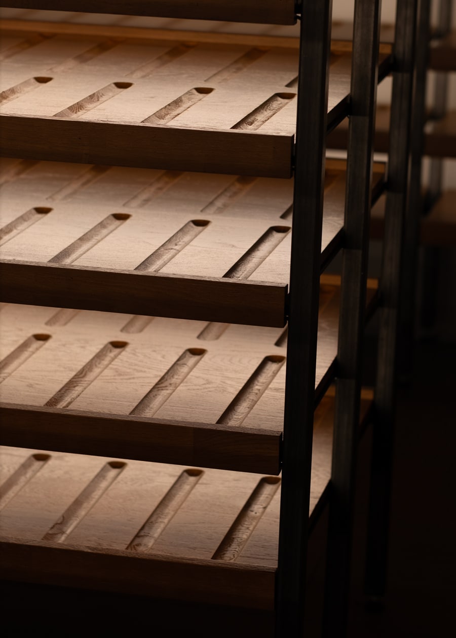 Slutresultatet är en champagnekällare i massiv ek som kombinerar hantverksskicklighet, material av högsta klass och en känsla för detaljer – ett projekt i en klass för sig.